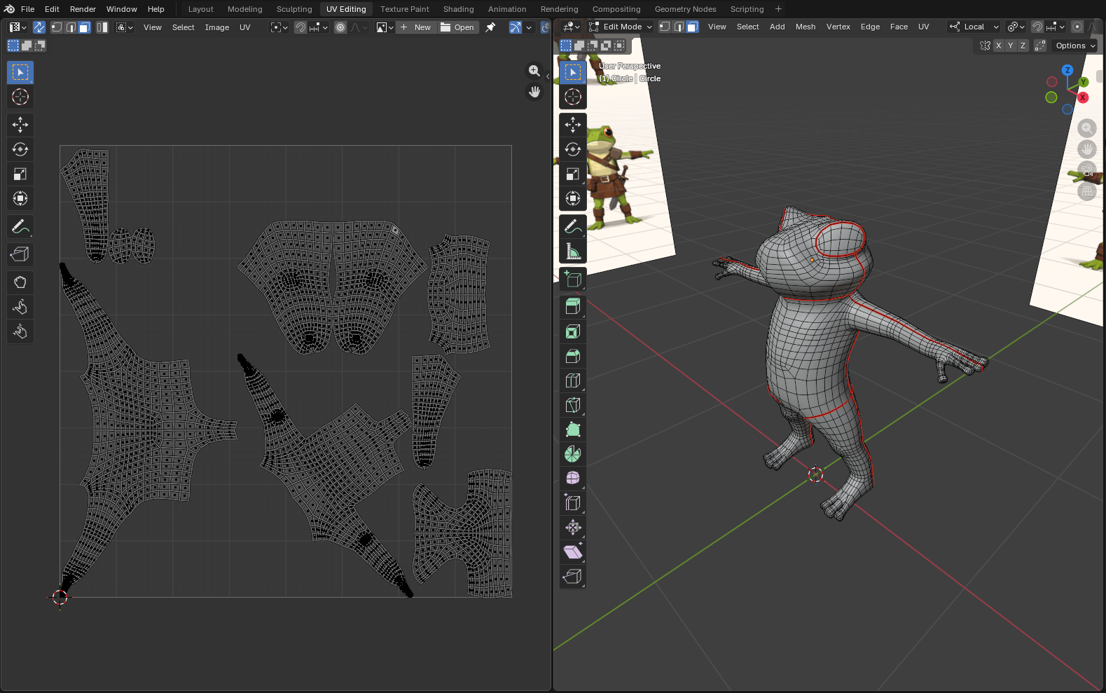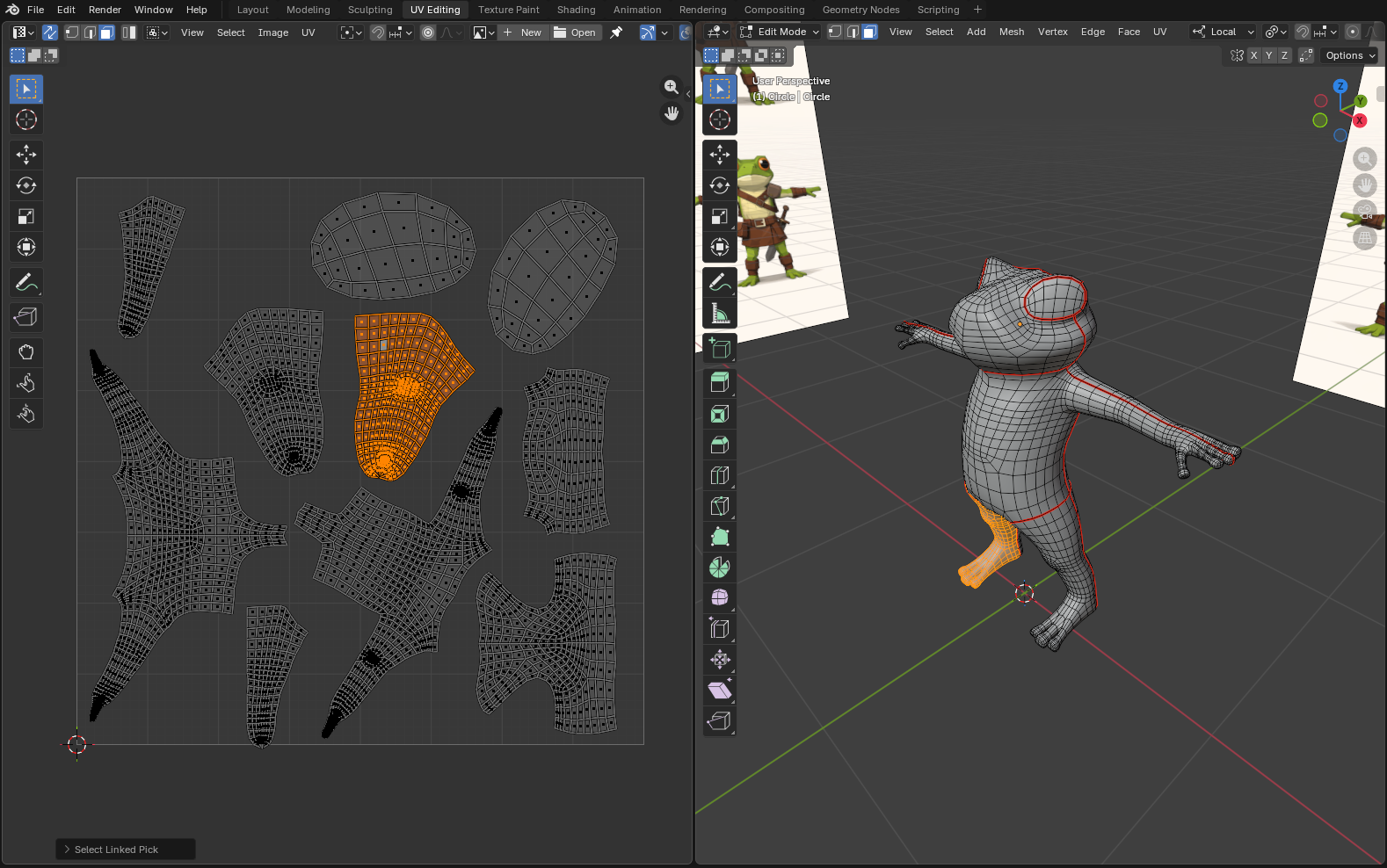 В левом окошке можно манипулировать сеткой так же как и в правом. Если выделить кусочек развертки и нажать клавишу L, то выделится весь кусочек.