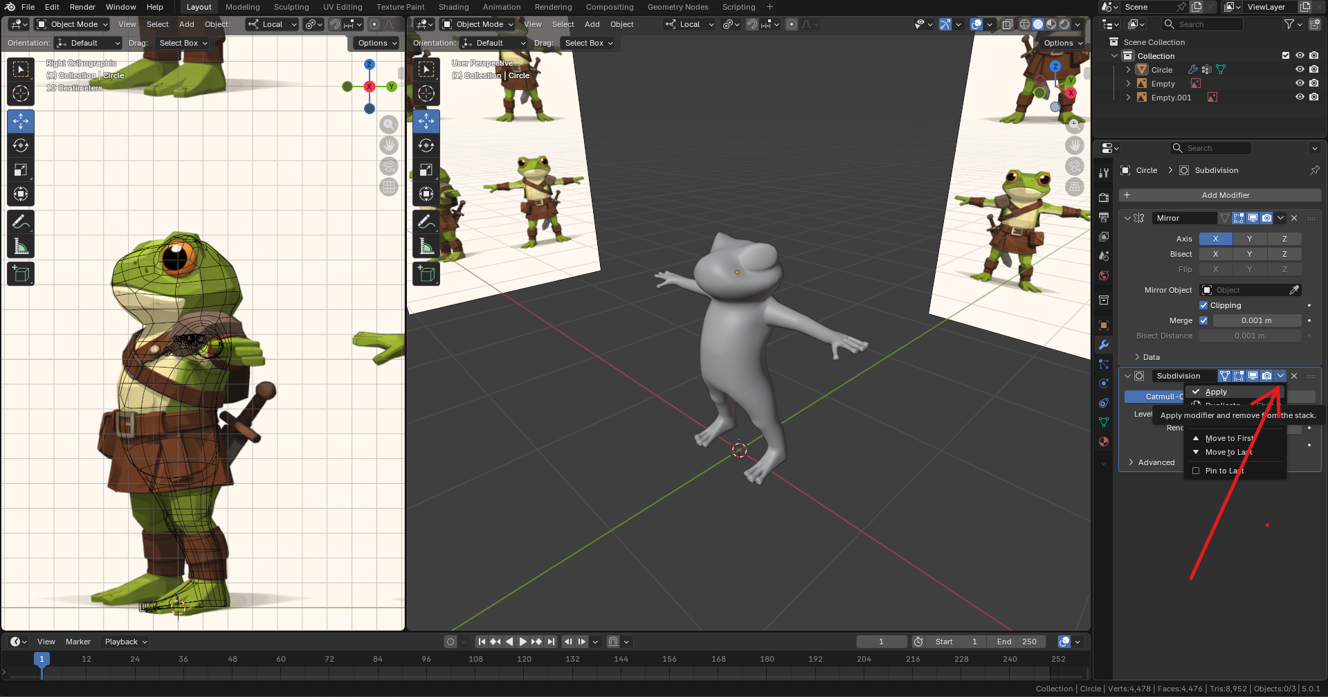 Результатом прошлых частей стала вот такая модель. Так как И ТАК СОЙДЕТ, я применяю все модификаторы. Лучше, конечно, сохранять в отдельный файл или делать дубликат модели перед каждым важным шагом.