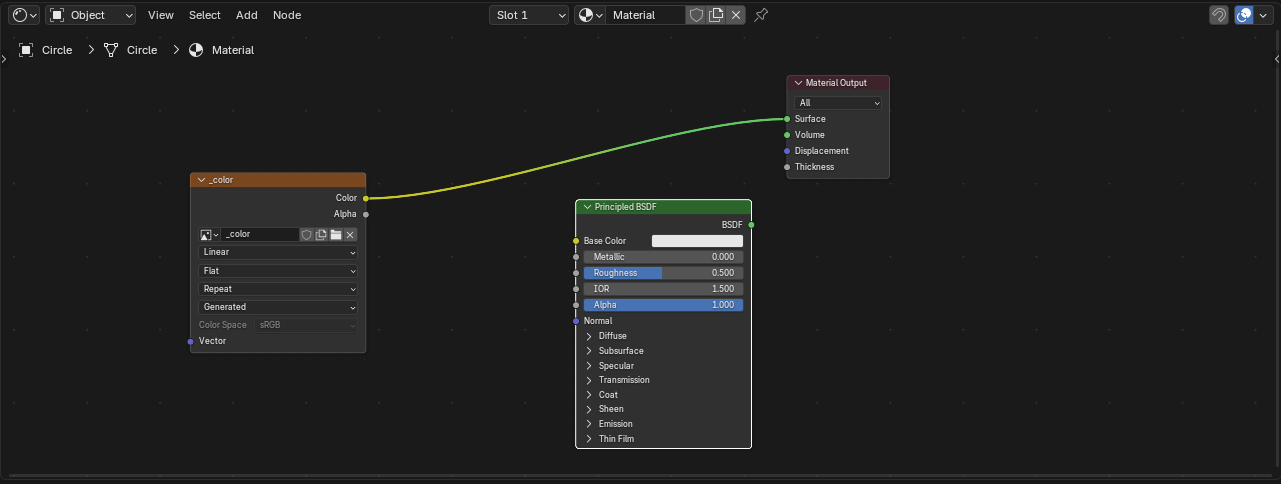 Соединяем либо с Base Color в Principled BSDF, либо с Surface в Material Output.