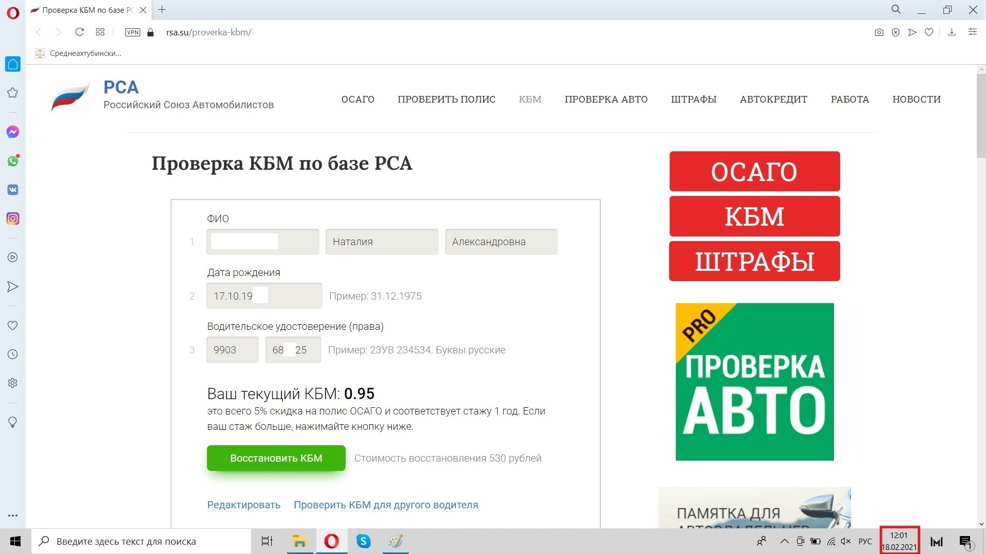 Месяц назад в утренней телепередаче увидел сюжет про ошибки при исчислении КБМ (коэффициент бонус-малус). Тут же вспомнил про посты на пикабу, связанные с этой же проблемой, и хоть договор заканчивается только в июне, решил проверить КБМ свой и жены.