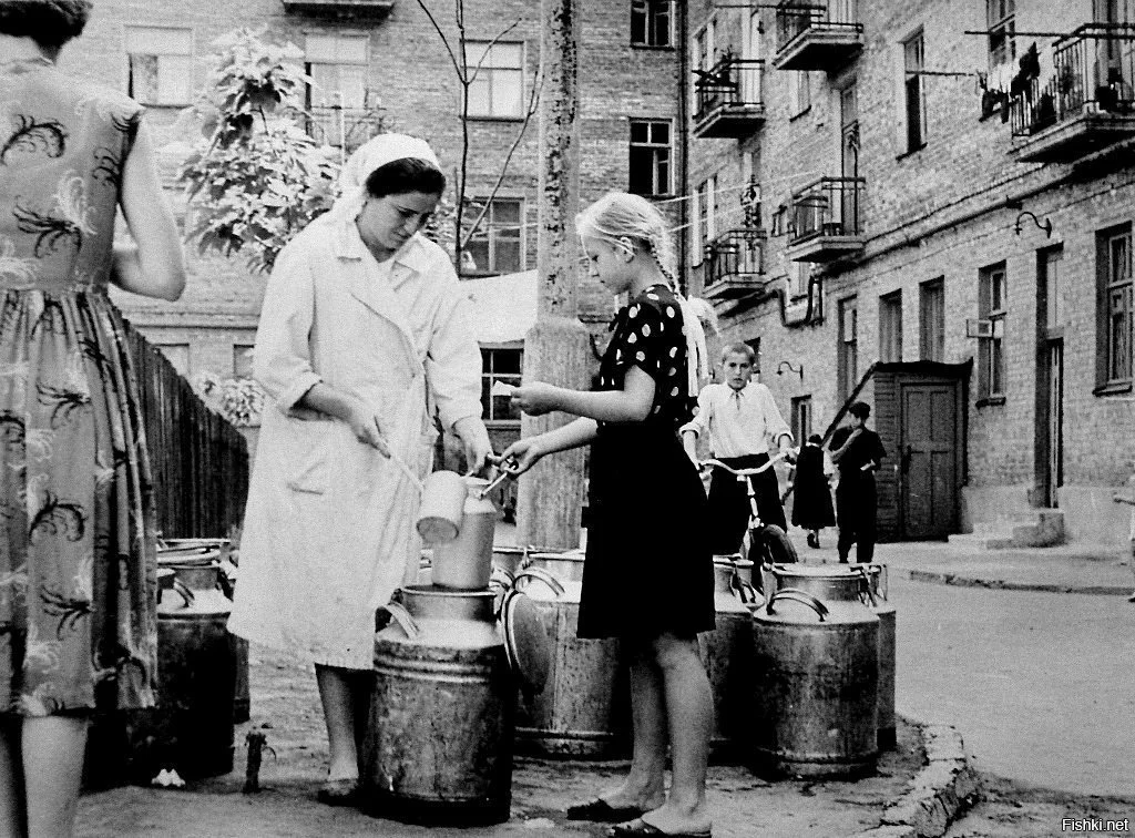 До сих пор по дворам ездят такие бочки с молоком от фермеров. Плюс творог-сметану-масло продают. Но это маленькие аккуратные бочечки типа для кваса-пива. В детстве же ездили такие прям бочищи-цистерны от молокозаводов. И такое молоко разбиралось махом, так как оно было вкуснее, жирнее и дешевле магазинского. Поэтому очереди к пустому месту во дворе (куда потом подъедет бочка) занималась загодя.