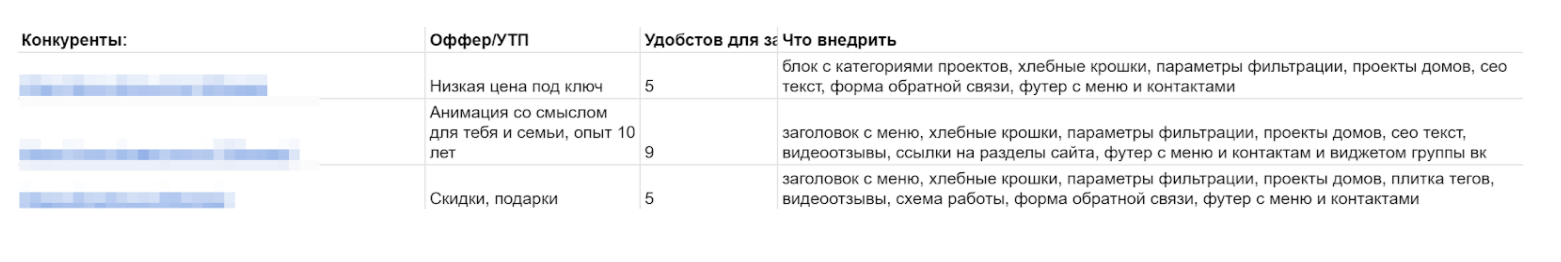 На старте изучаем конкурентов и кейсы по тематике, выписывая все конкурентные преимущества и интересные инсайты. Это помогает найти точки роста и сформировать план развития проекта в будущем. Анализируем 8-10 компаний из первых страниц выдачи в Москве, СПб, Казани и других городах.