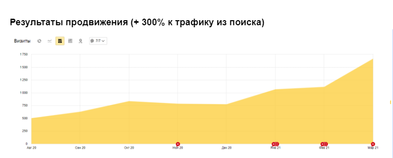 При работе над продвижением сайта мы редко используем только технический подход. Наш стиль - работа в продуктовом направлении и взгляд со стороны конечного заказчика. Главная задача - устранить все узкие места, начиная от первого посещения и заканчивая отправкой заявки. Техническая оптимизация под высокочастотные и конкурентные запросы основных страниц отходит на второй план.