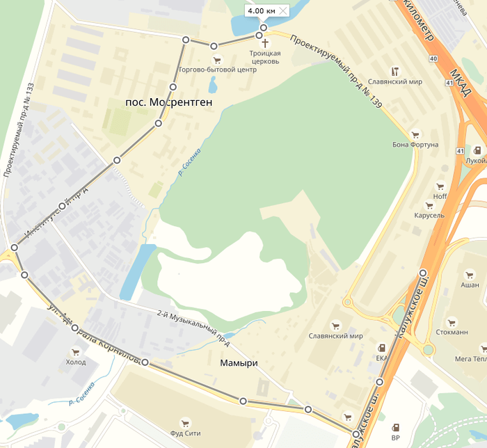 Вот несколько карт, на которых указана дорога, ведущая от села Троицкого и Мосрентгена к Калужскому шоссе.