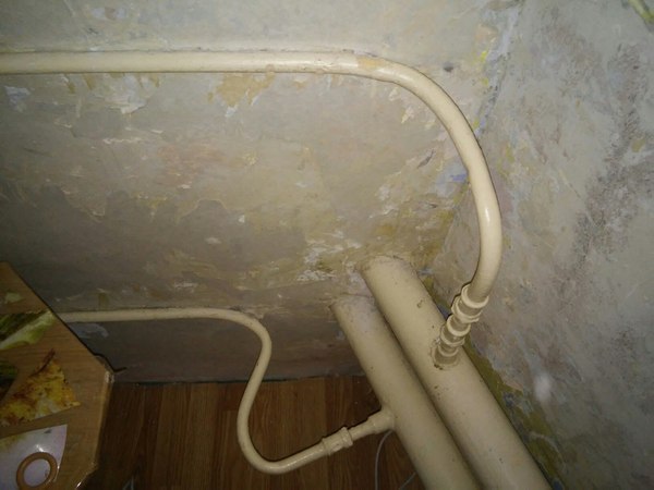 Данную стену желательно зашить гипсой, так как трубы идущие к батарее ужасно кривые, да и вообще руки бы оторвать тому, кто их устанавливал. Чугунную батарею заменю на современный би-металлический радиатор, с этим проблем быть не должно, к батарее 2 крана подключены на входе и выходе.
