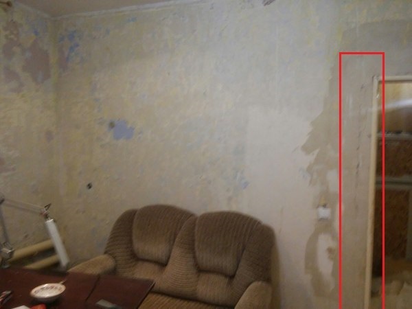 Стены очень кривые, слой шпаклевки не более 1-2 мм, и нанесена она на краску, похожей красят стены в подъездах, естественно обои отходили вместе с ней.