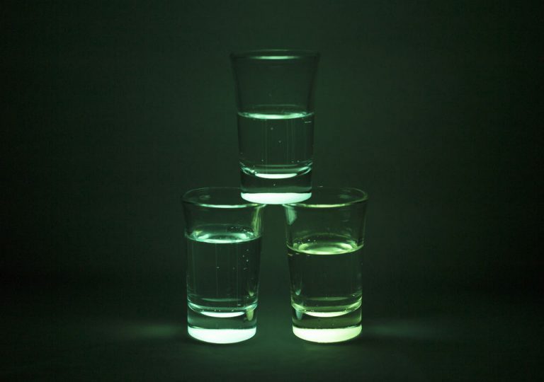 Совет: Для того чтобы стакан светился дольше и интенсивней, используйте ультрафиолетовую подсветку или фонарик и направьте свет на область застывшей смолы в нижней части стакана. Сделайте это в течение 10-20 секунд. Стакан засветится очень интенсивно буквально на ваших глазах! Кроме того вы можете использовать солнечный свет! Чем дольше солнце «подзаряжаете» ваш стакан, тем дольше и интенсивнее он будет светиться.