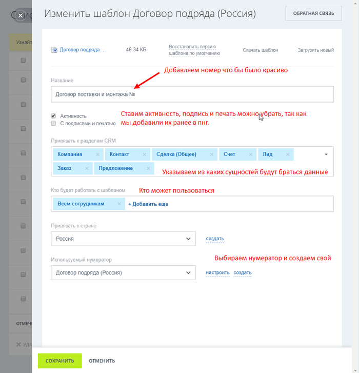 После того как все сделано, а быстро сделать без опыта не получится, поверьте. Все время будут теряться какие то поля, загружаем наш шаблон в CRM.