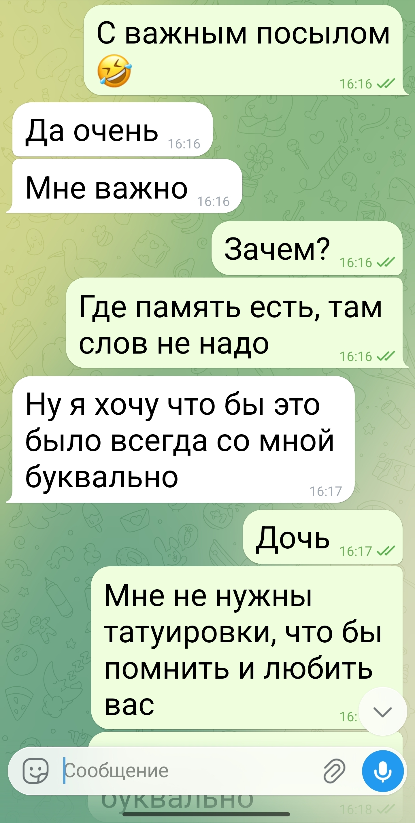В какой то момент дочь присылает мне вот такое сообщение