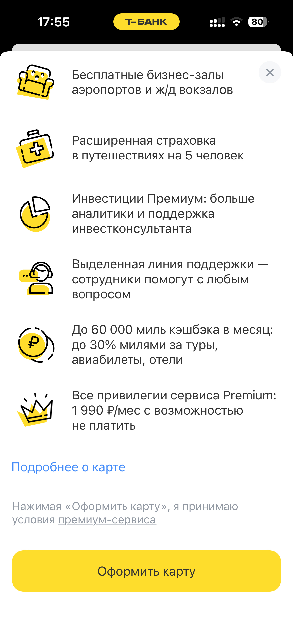 Вот так выглядит страничка при оформлении карты, никаких слов про списание, только выгода как на премиум. Но после нажатия оформить карту с Вас в момент спишется 1990₽ без каких либо подтверждений оплаты!