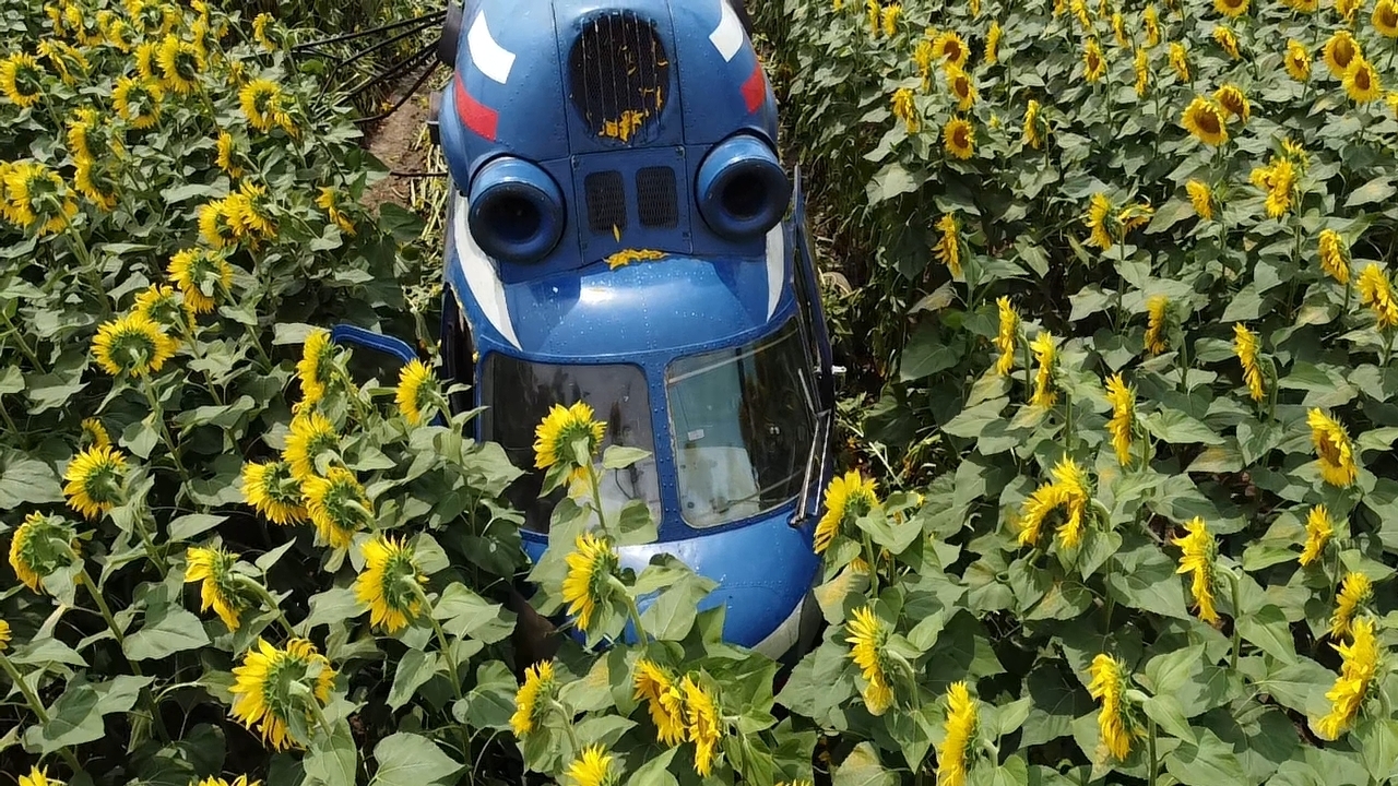 4 июля утром в районе Прохладного в Кабардино-Балкарии плюхнулся Ми-2, выполнявший авиасельхозработы. Вертолет повредил линию электропередач, а пилот, по данным ТАСС, задал стрекача с места жесткой посадки. Но не дело не в нем, и не в опрыскивании полей. Дело - в фотографии от МЧС. Это просто красиво.