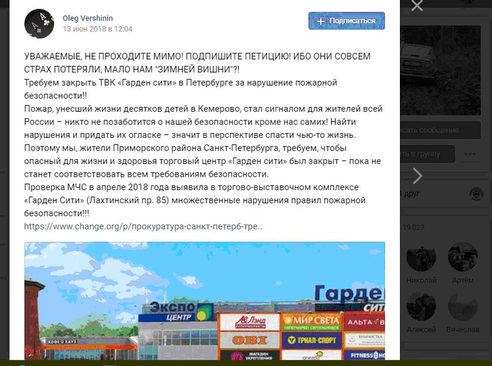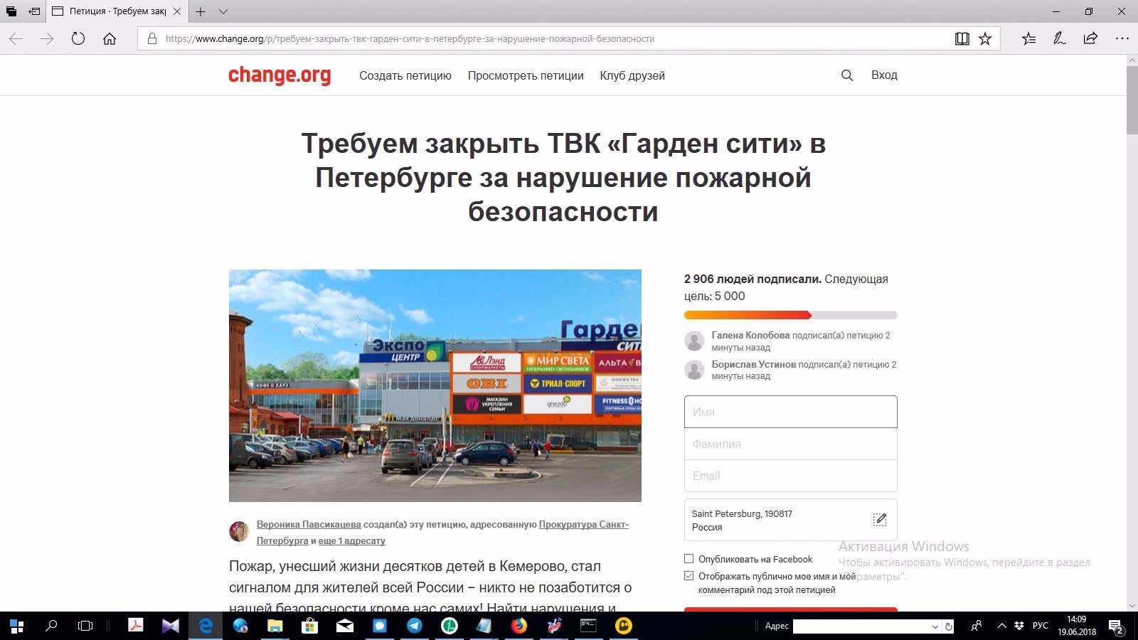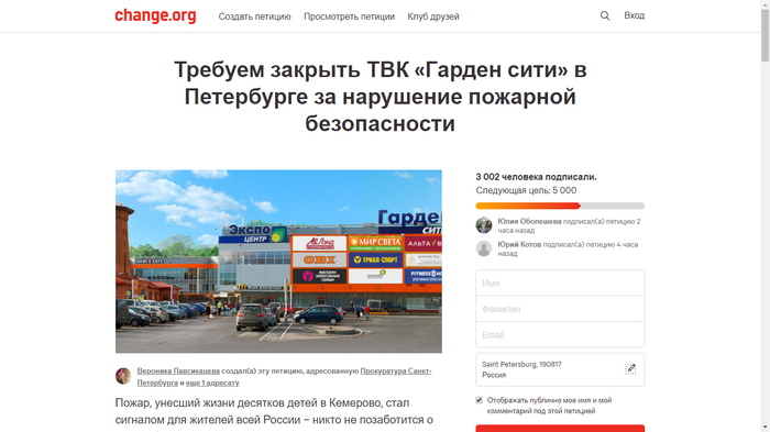 Самое популярное оружие сегодня – это петиции. Еще бы, ведь Президент России обещал рассматривать те из них, под которыми соберется 100 000 и более подписей. Значит для начала составляем петицию. О чем? О том, что торговый центр, который мешает вашему собственному бизнесу нужно закрыть. Почему закрыть? Ну, вот тут придется поломать голову. Придумать крыс размером с ротвейлера, или пожаловаться на негативное воздействие цвета фасада на биополе прохожих. Впрочем, можно и не фантазировать. Трагедия в Кемерово еще не изгладилась из памяти и информационного поля, значит можно заявить, что вы боитесь ее повторения. Поводов для этого, правда, в реальности нет, но обитателям интернет-пространства, простите, пофиг. Они подпишут что угодно, если их правильно спровоцировать. Разумеется, спекулировать на трупах кемеровчан – это как-то не очень, но вы не стесняйтесь, ведь главное – цель! Размещаем на *ченч.орг* – из сайтов для публикации петиций этот – самый раскрученный.