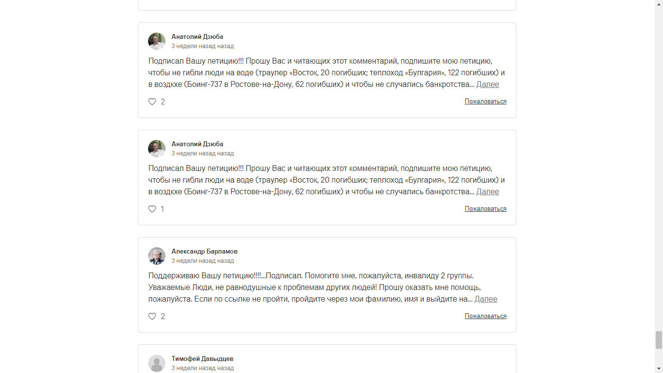 Осталось последнее, что необходимо, чтобы петиция выглядела «как живая» - комментарии. Конечно, какое-то количество комментариев приходит «самотеком». Но какие-то они… не такие, как надо.