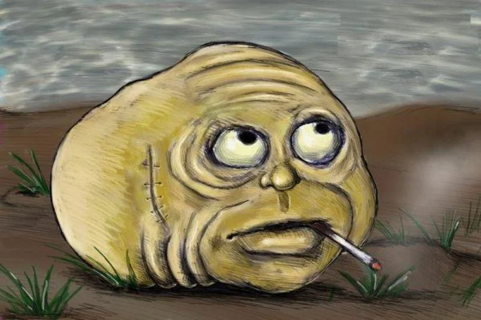 Это был очень старенький колобок, который повидал жизнь, страдающий алкоголизмом и только что вернувшийся из тюрьмы. Не хватало только тельняшки для полного колорита. Ну а вся тяжёлая работа трёх дядек-хирургов завершалась прекрасной зелёной шапочкой от костюма огурца с проволокой-хвостиком.