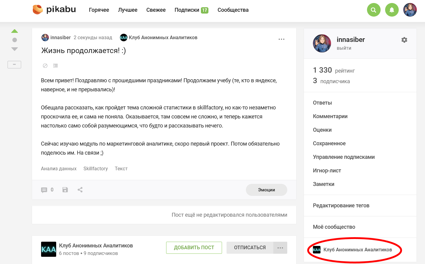 Теперь просто ищем кнопку "Добавить пост". На компьютере она будет выглядеть вот так: