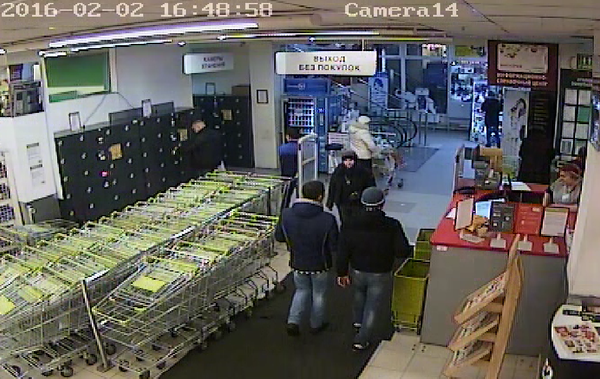 При просмотре я увидел двух странных "покупателей". Первое, зайдя в торговый центр, они направлялись в продуктовый магазин "Виктория", затем переметнулись на эскалатор, поднялись вверх и сразу же спустились. Только после этого они зашли в саму "Викторию", взяв в руку корзинку (это важно, скажу почему). В этот момент было примерно 16:26. В 16:49 они быстрыми шагами вышли из магазина. Выходили они через "вход". Обычно люди выходят из магазина через кассы. 25 минут они пробыли в магазине, ничего не купив. Также у меня есть кусочек видео, где эти ребята подозрительно ходят по магазину с хлебом и уже без корзинки, якобы выбирая лук. В общем, выбежав из магазина, они ломанулись во все ноги. После этого у меня не было сомнений, кто меня обокрал.