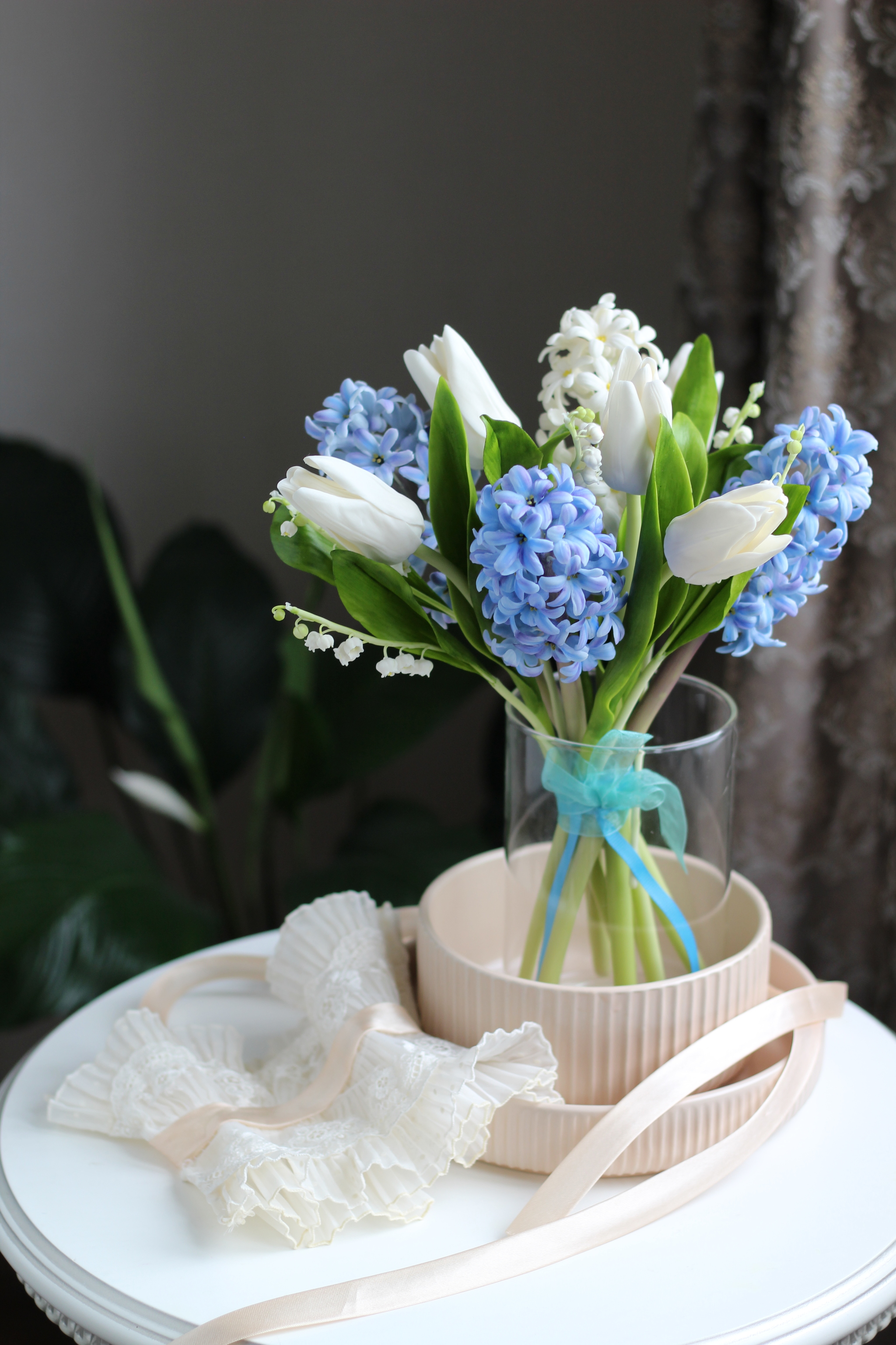 Отсутствие снега и температура выше нуля еще больше подталкивает меня на создание весенних работ. Вот такой букет из гиацинтов и тюльпанов у меня получился.