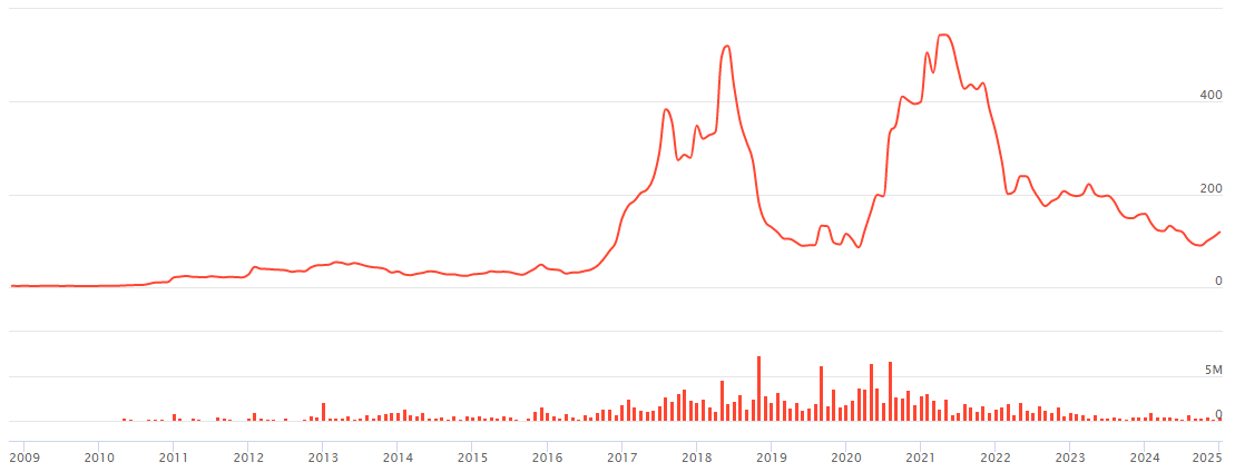 А если взять стоимость компании - то она сейчас стоит столько же (или того меньше) чем в начале своего пути: