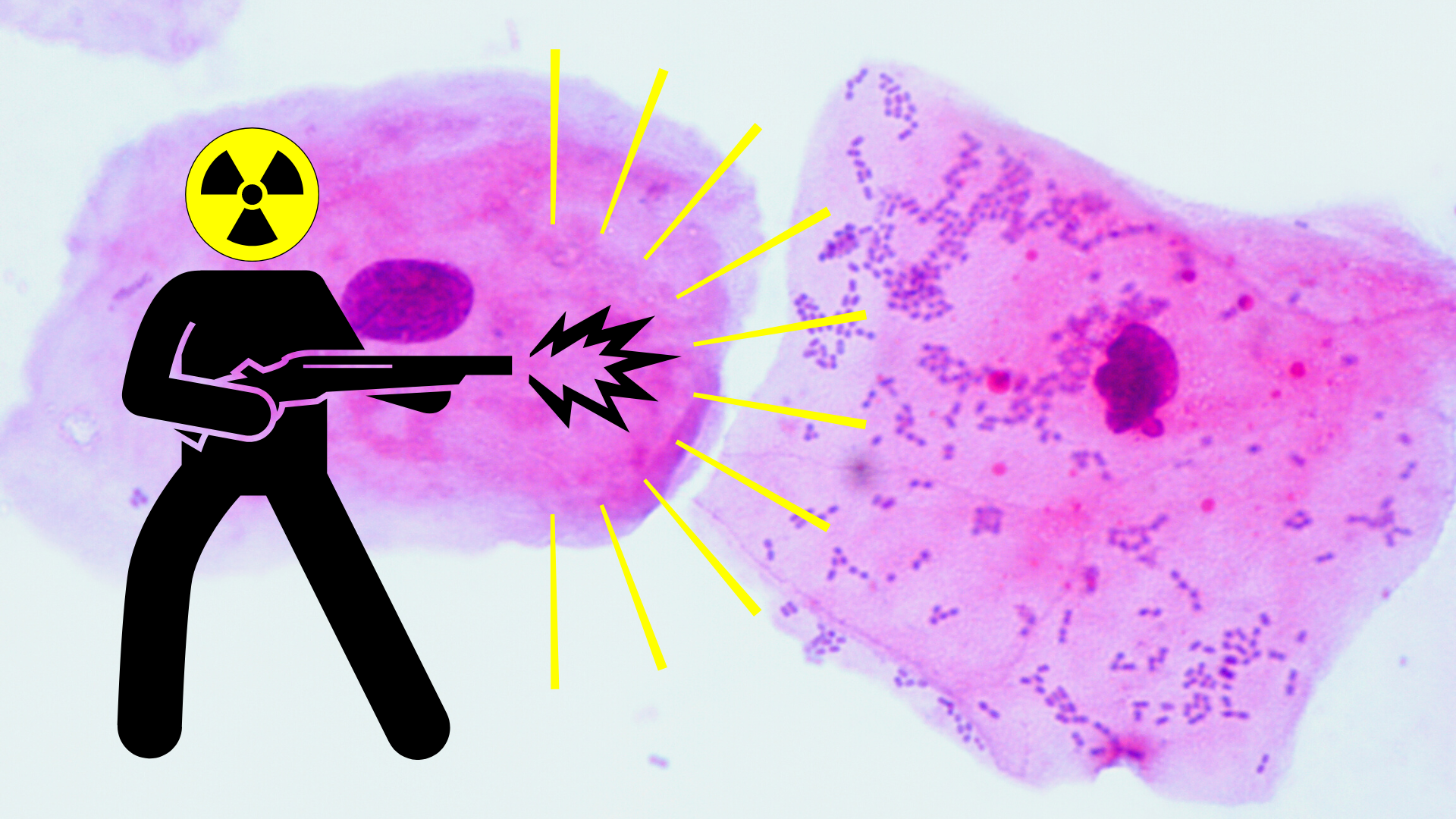 Радиация для них подобна выстрелу из ружья. Ионизирующее излучение, как дробь разрушает клеточные структуры, из-за чего работа клетки нарушается. Транспортеры не переносят, рецепторы не воспринимают, энергия не выделяется.