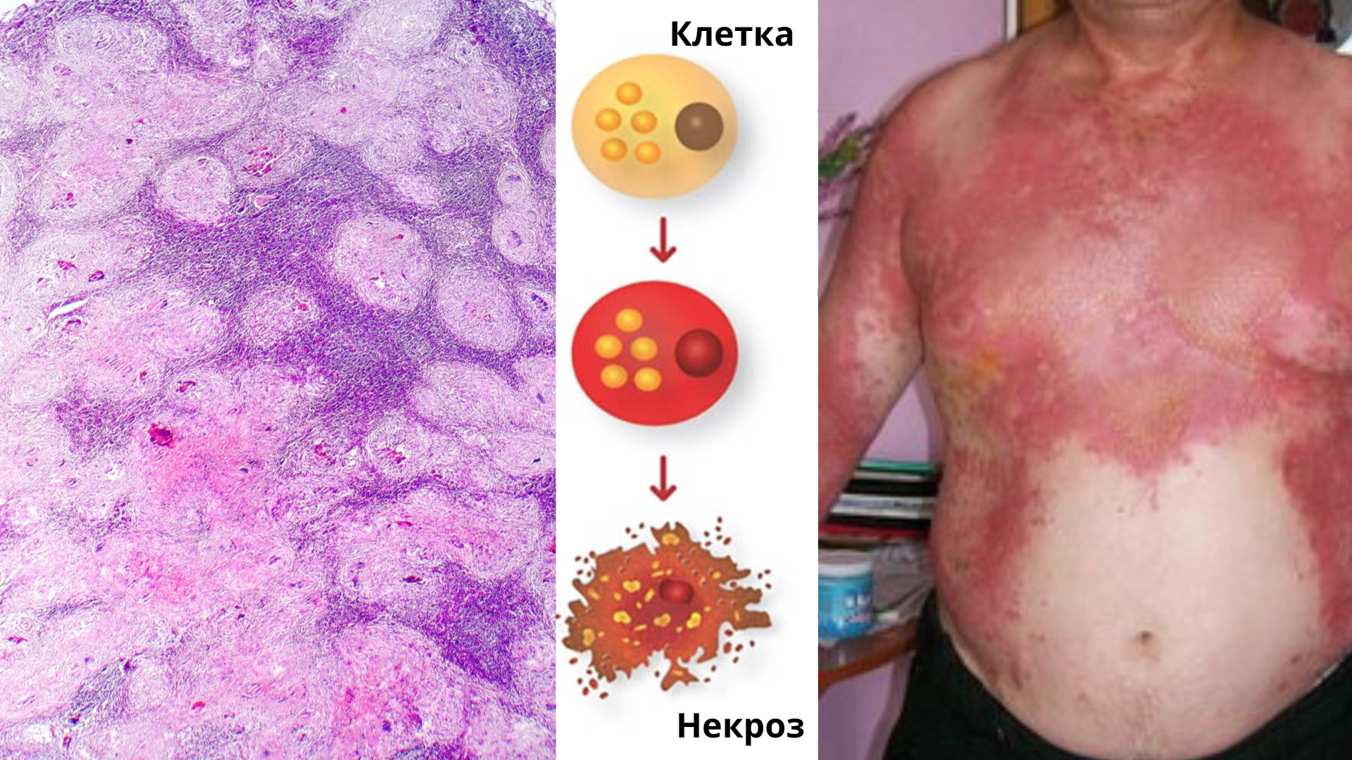 Если радиационное излучение слишком сильное, то клетки получают ущерб несовместимый с нормальной жизнедеятельностью. Важные молекулы и белки разрушены, информация о правильном порядке сборке и ремонте машин повреждена. Происходит некроз, сначала отдельных клеток, а потом и целых тканей, и органов.