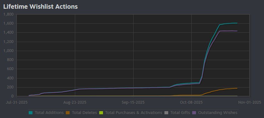 Во первых всегда хочется большего, во вторых, оглядываясь на опыт других разработчиков, выпускать игру если у проекта менее 5000 вишлистов не особо имеет смысла, т.к. она просто утонет на релизе.