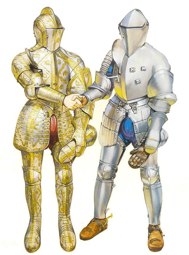 Начиная с XIII века королевские указы предписывают пользоваться во время турниров тупым оружием à plaisance - "для удовольствия", оставив беспощадное оружие à outrance для настоящих сражений. Если эти указы еще не вышли, возьмите оба комплекта, а также как минимум два щита.