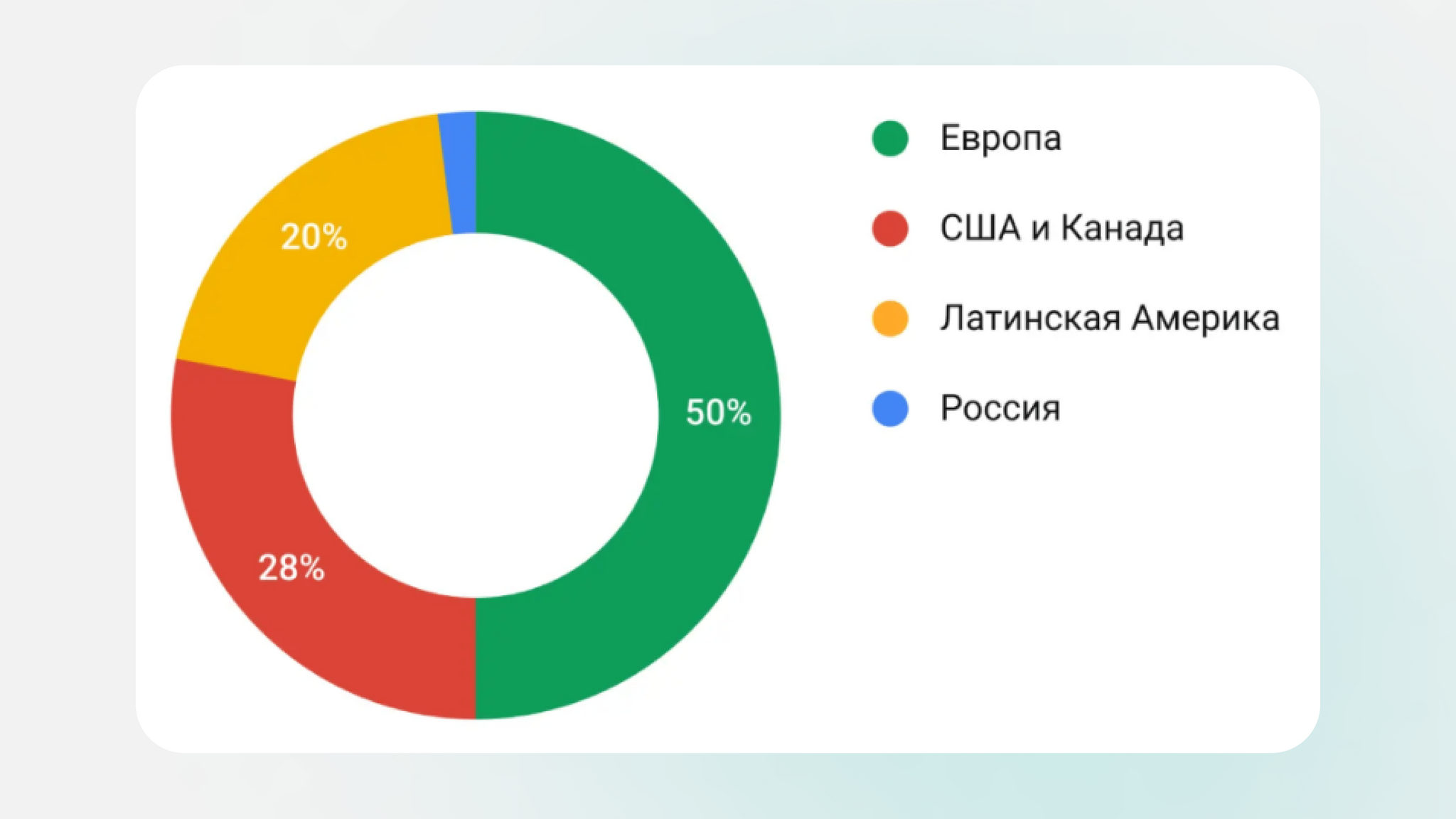 Бóльший процент таких сервисов сосредоточен в Европе. В России бизнес развит не так хорошо — всего 2,1% от общего рынка: