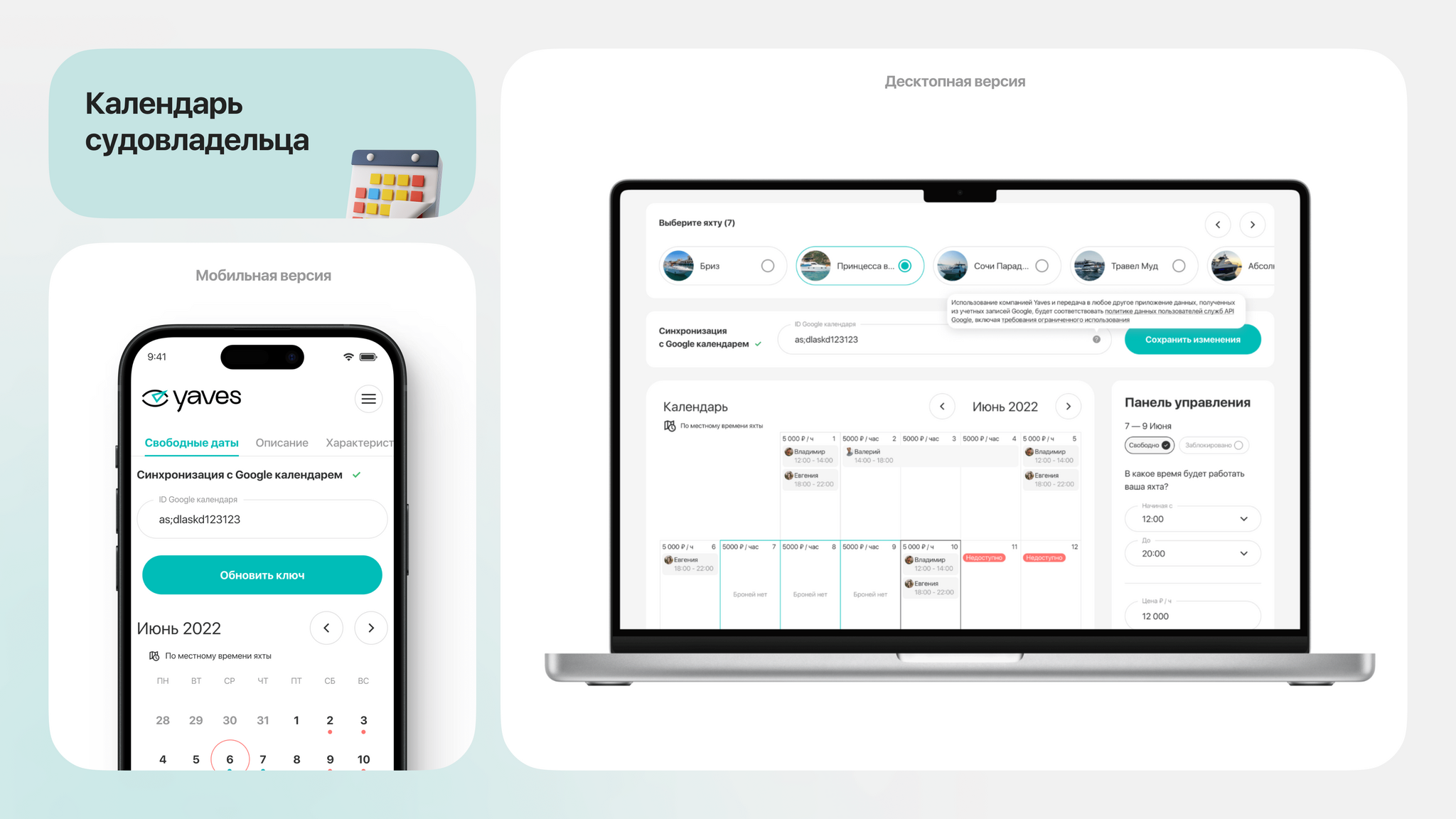 Как он работает? У судовладельца есть календарь. Он может зайти в свой личный кабинет и посмотреть, какие даты забронированы. А может и не заходить, потому что все забронированные даты дублируются в его гугловский календарь — для многих так удобнее.