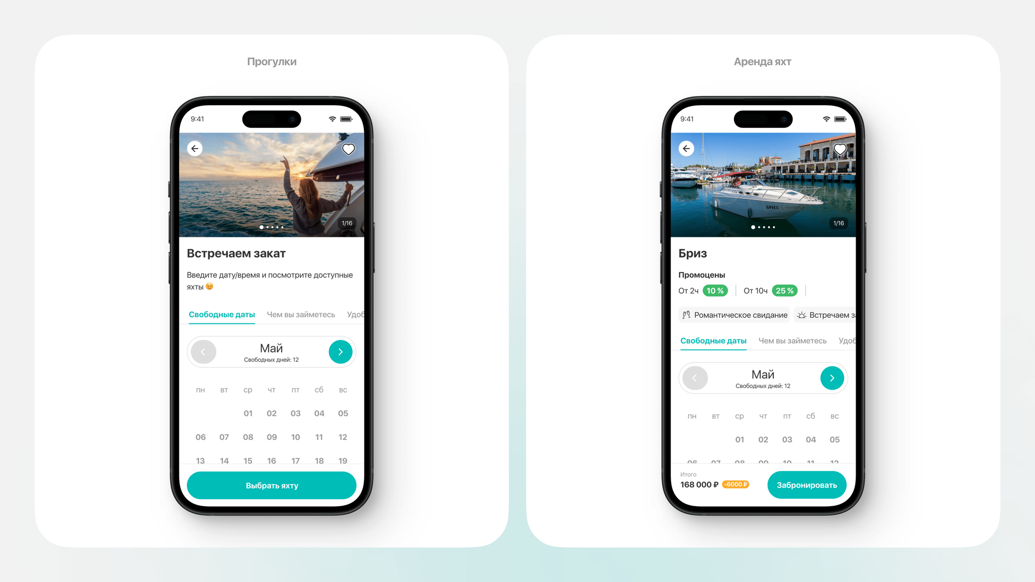 Тогда же поделили услуги на 2 вида: раньше можно было арендовать только яхты, а теперь еще и прогулки. В чем разница?