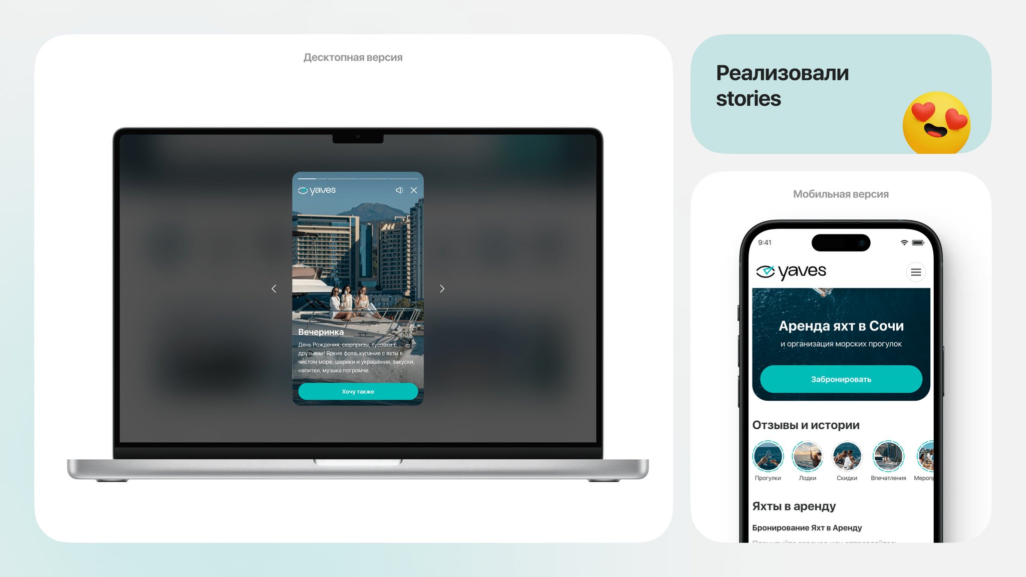 Привет! Меня зовут Анна, я РОМ в веб-студии Пиробайт. Продолжаю делиться нашим опытом разработки. Сегодня расскажу, как мы разработали первый в России онлайн-сервис по аренде яхт Yaves. Работает он, кстати, в Адлере и Сочи — берите на заметку, если планируете там отпуск :)