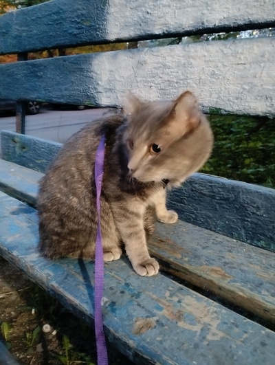 Принесла его дочь маленьким, он постоянно плакал, боялся высоты, бегал за своей мамой (моей дочкой). Она его забрала как найденыша по объявлению. Сейчас это 2годовалый котяра, который живёт сам по себе. Меня любит, приходит обниматься раз в день, когда муж уходит в ванну, муж - его кормилец, будит его утром и ждет с работы, с сыном у них игры и драки, у дочки в комнате спит днем.