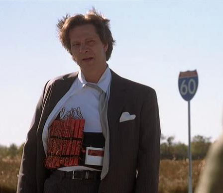Почти все в городе окрашено в бежевые, коричневые и серые тона. Долорес в своем ярко-синем платье выделяется, как лоскут неба на пыльном полотне фронтира. В данном кадре ещё один персонаж одет в одежду яркого цвета — человек в красной куртке. Как и Долорес, это ключевой персонаж — главарь шайки, к которому игрок может присоединиться, чтобы напасть на ранчо.
