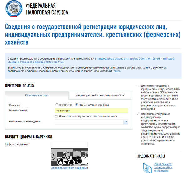 Вводим название компании как оно написано в вакансии, галку на точное соответствие и регион не ставим, даем шанс системе дать нам больше инфы, ведь одна и та же фирма мб зарегестрирована в разных регионах.