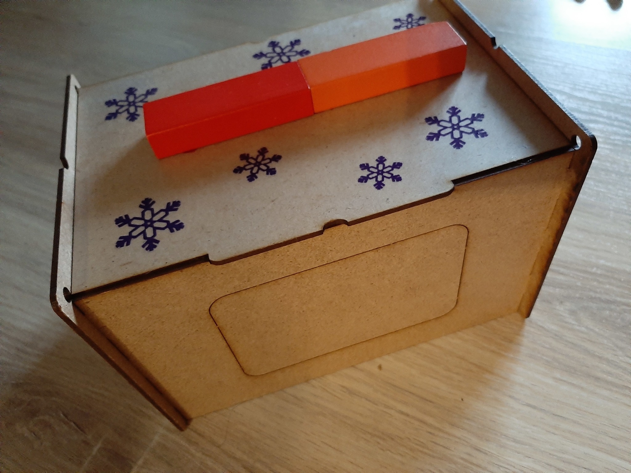 А у нас детские подарки в этом году выдали в таких вот фанерных сундучках. Вроде бы ничего особенного, но он с лёгкостью превращается в кормушку для птиц. По бокам не до конца вырезанные окошки и дырочки для подвеса) Логотип фирмы сверху закрыла)