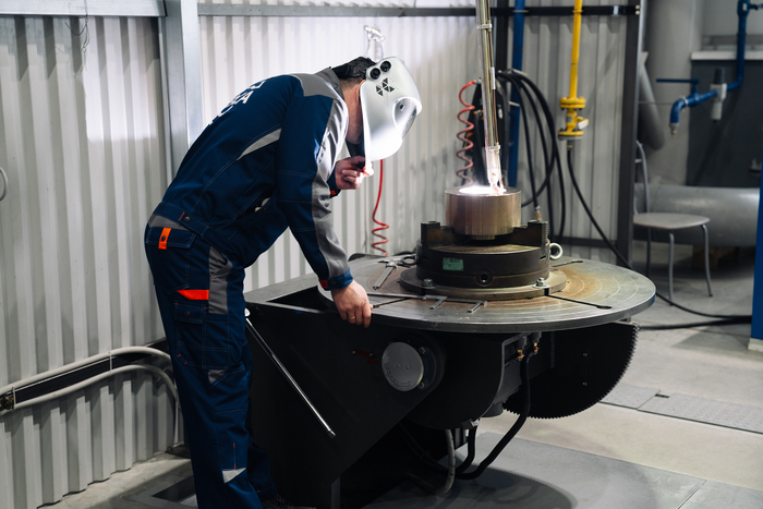 Лишь на установке автоматической сварки будущий шаровой кран становится максимально сильно похож на готовый продукт.