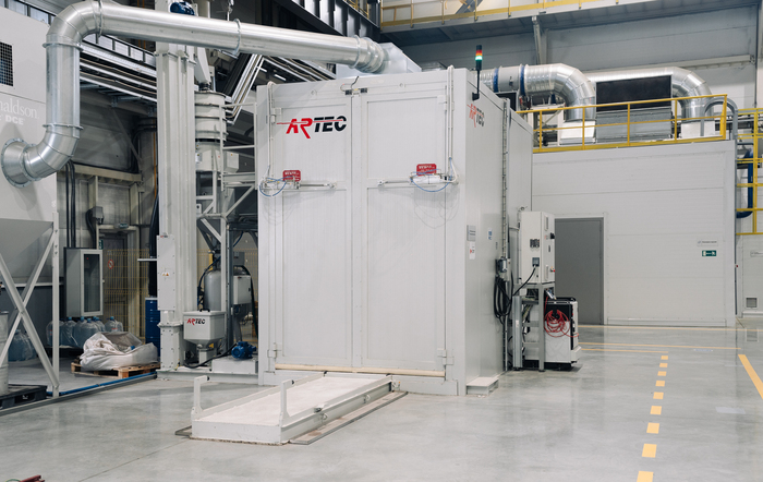 Комплекс установки состоит из камеры термического напыления и роботизированной камеры абразивоструйной обработки