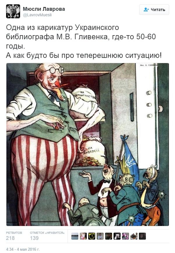 6a6au 9 лет назад Как в воду глядел ... https://twitter.com/LavrovMuesli/status/727823621360484352 Украина Политика СССР Карикатура X (Twitter)