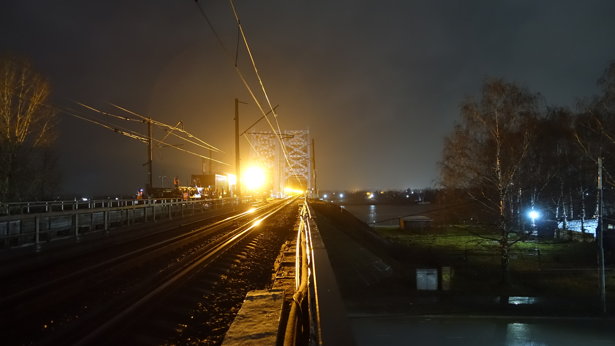 В это время на мост заехал поезд, оттормозился, и прям на нём стал. Стал иногда давать гудки. Оказалось пути впереди разобраны.