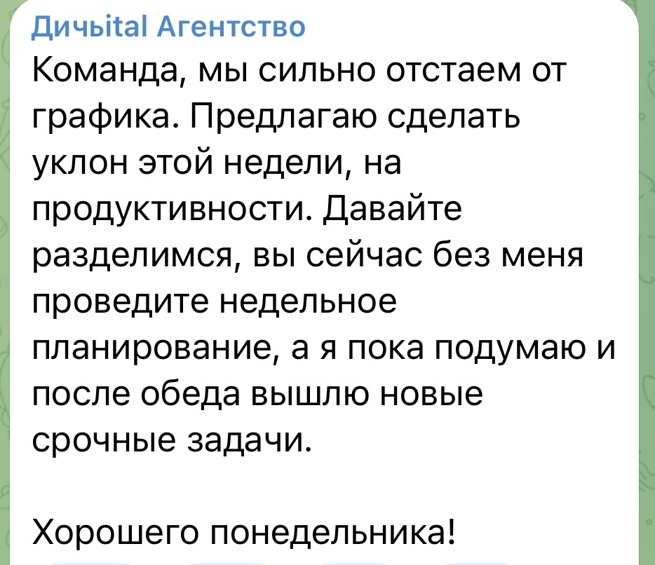 11 KindlyAgent008 Как Ваш понедельник, коллеги? 1 год назад Источник: https://t.me/+nse8BD_MWgQ3NTgy [моё] Скриншот Начальство Юмор Работа Коллеги 2 1 Ещё 0