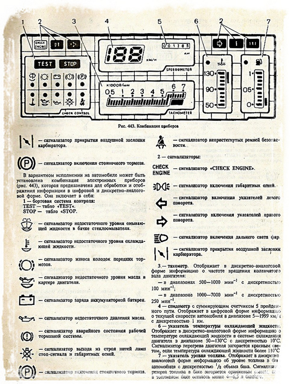 В комбинации приборов КЭП 43.501 присутствовал даже индикатор непристёгнутых ремней безопасности (требование канадского рынка).