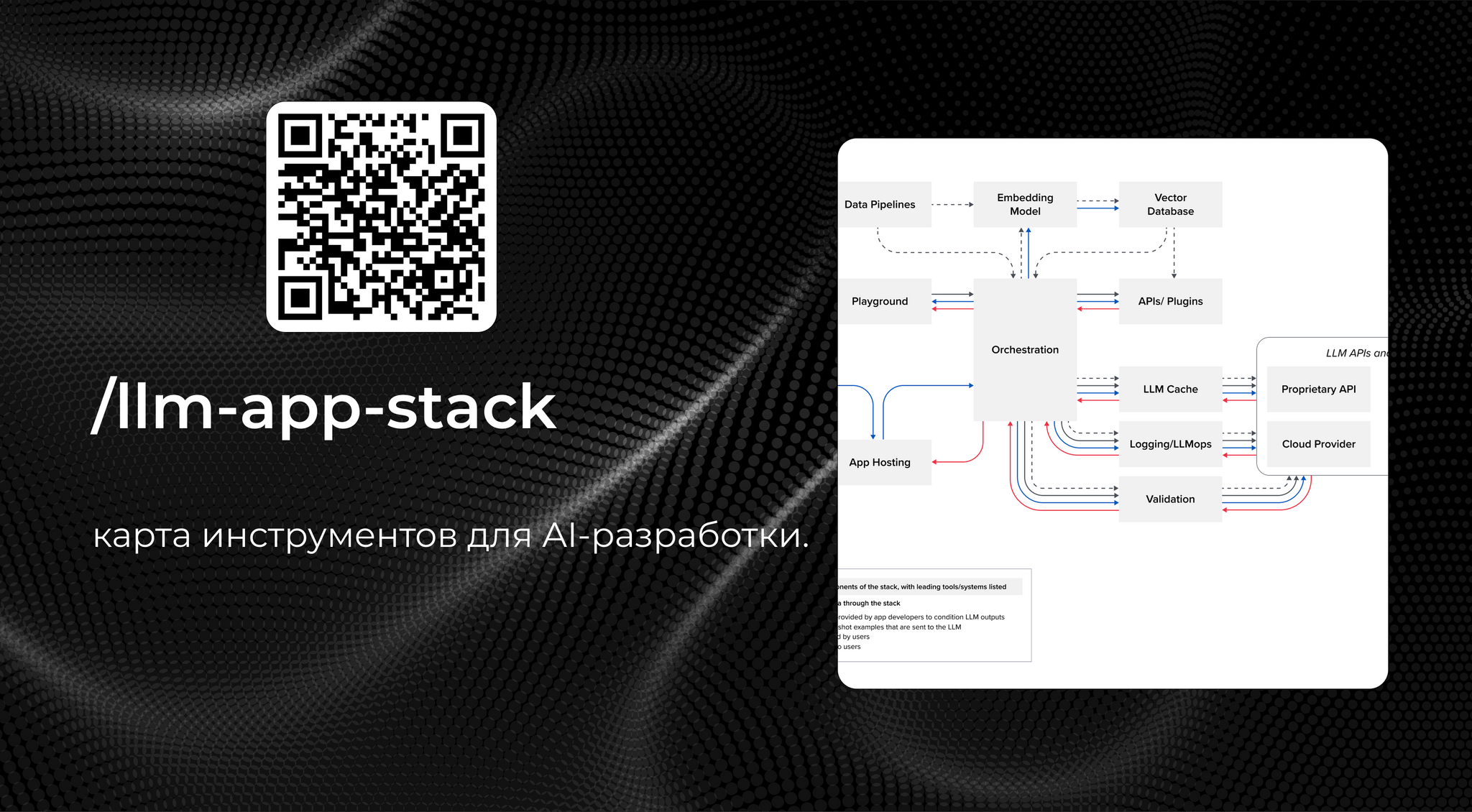 В нём собраны инструменты, библиотеки и сервисы, которые используются на каждом уровне LLM-стека.