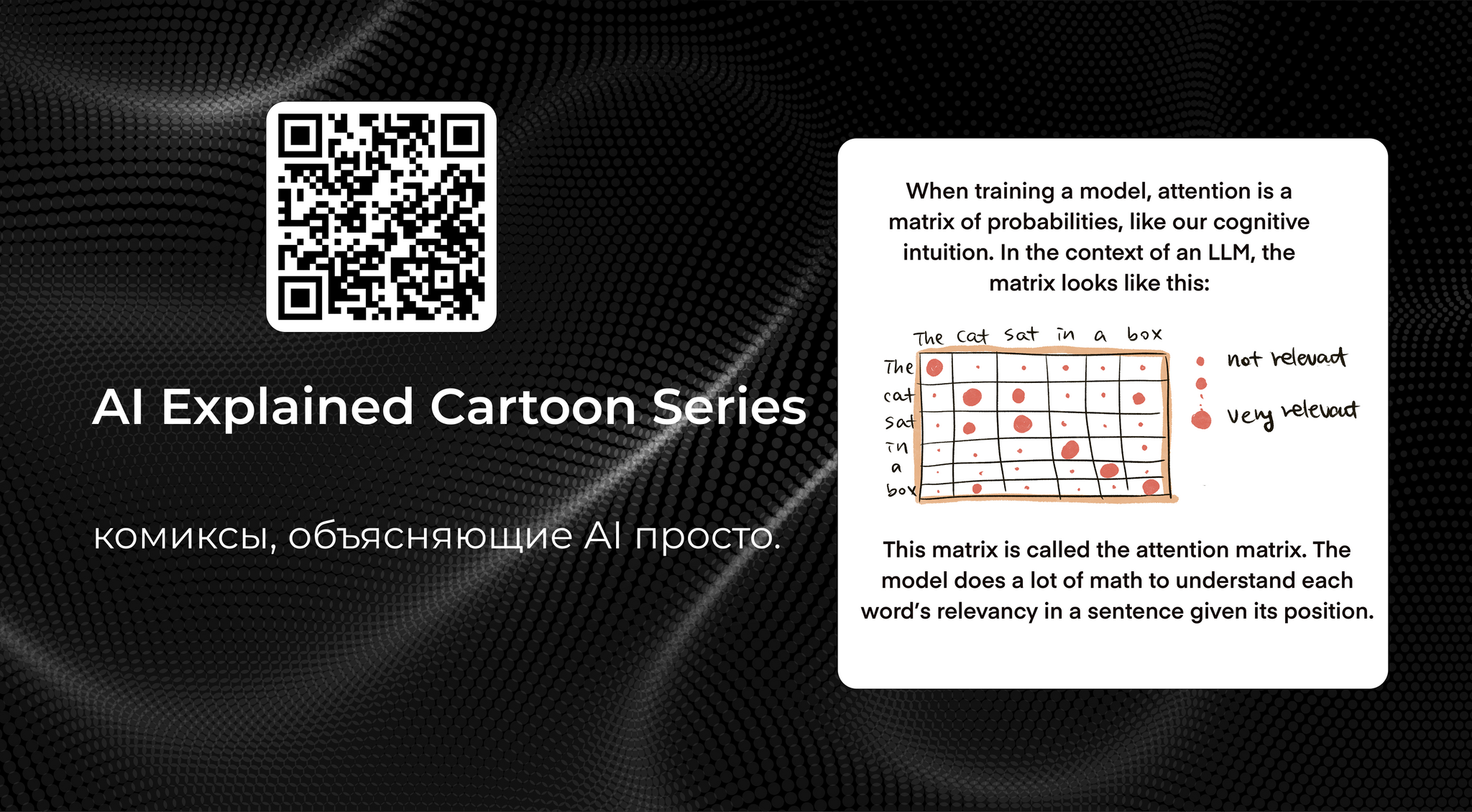Это серия образовательных иллюстраций, где сложные концепции искусственного интеллекта объясняются в лёгкой, «мультяшной» форме.