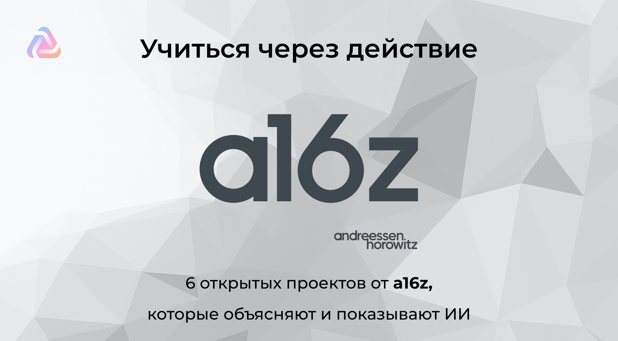 Кроме прямых инвестиций, a16z развивает собственное AI-направление: проводит конференции, выпускает исследования, подкасты и открывает исходные проекты, с которыми можно работать, учиться и экспериментировать.