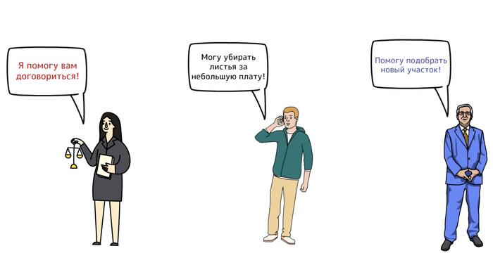 Смотрите, если Артем и Василий не смогли прийти к полюбовному соглашению по поводу яблони, то они могут обратиться к юристам, чтобы те помогли им решить вопрос. В результате возникнут расходы, связанные с заключением сделки, - те самые транзакционные издержки. То есть, желая все-таки решить зашедшие в тупик переговоры и застраховать исполнение взаимных обязательств, экономические агенты прибегают к услугам многочисленных посредников.