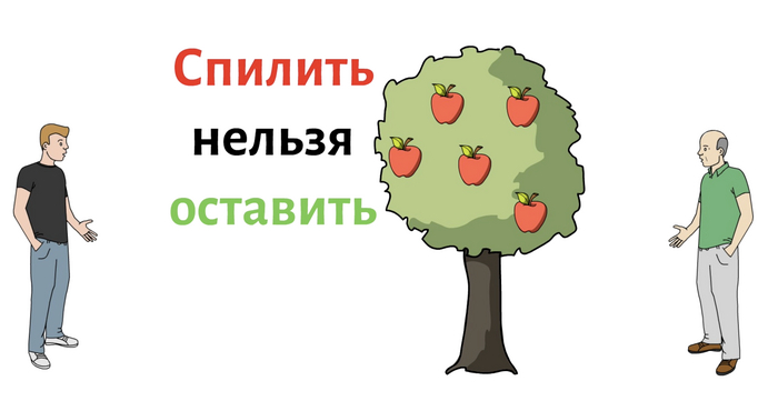 Но что, если Артем имеет полное право заставить Василия убрать яблоню, так как Василий по закону не должен был сажать дерево рядом с границей участка? Тогда ситуация развернется в обратную сторону и уже Василий предложит Артему определенную сумму, чтобы оставить все как есть.