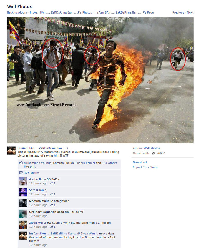 Еще один шедевр исламской пропаганды. Под фото надпись о том, что этого беднягу-мусульманина сожгли в Бирме.
