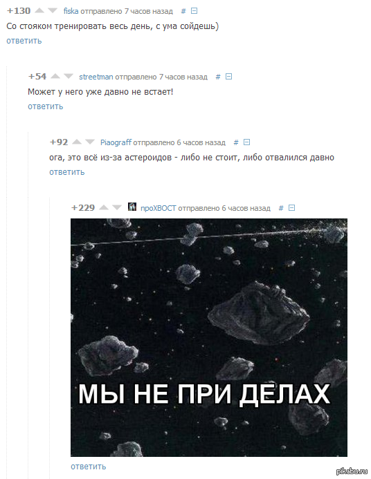 Puncherdead 12 лет назад Как всегда коменты радуют! http://pikabu.ru/story/_1442818 - от здеся) Комментарии Астероид Стероиды