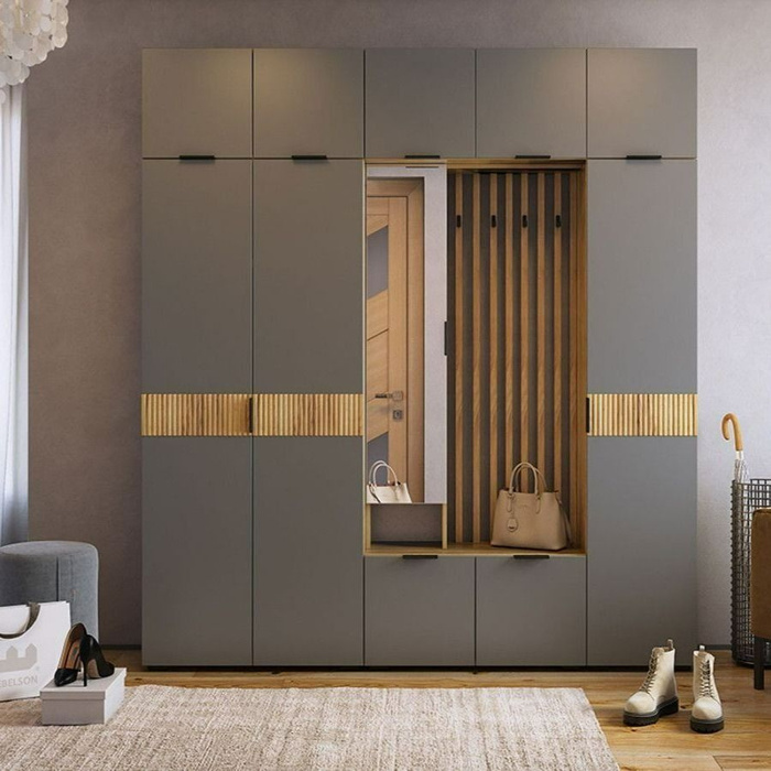 Для моделей с распашными дверцами, если учесть толщину дверок, глубина будет 38-40 см. Это не означает, что мебель будет нефункциональной. Можно заказать длинные верхние или нижние полки или антресоли. Для хранения обуви удобны корзины и наклонные полки.