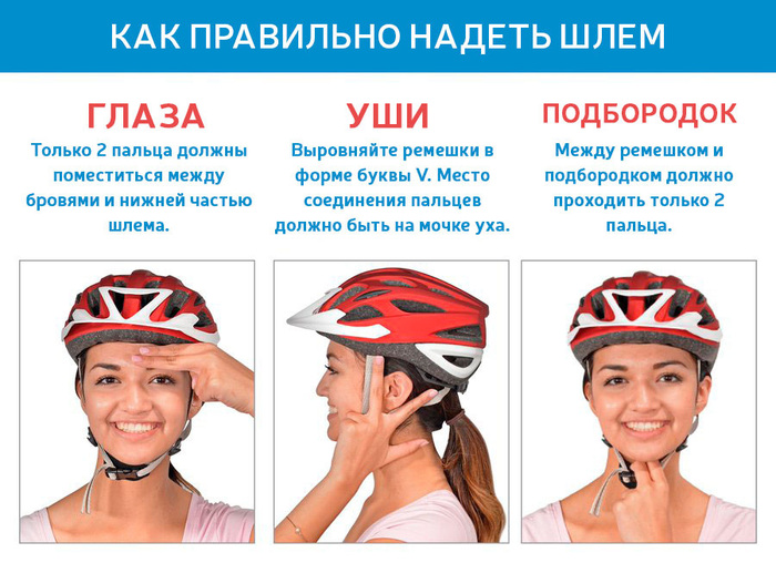 Шлем должен сидеть на голове прямо, не сползая и не болтаясь.