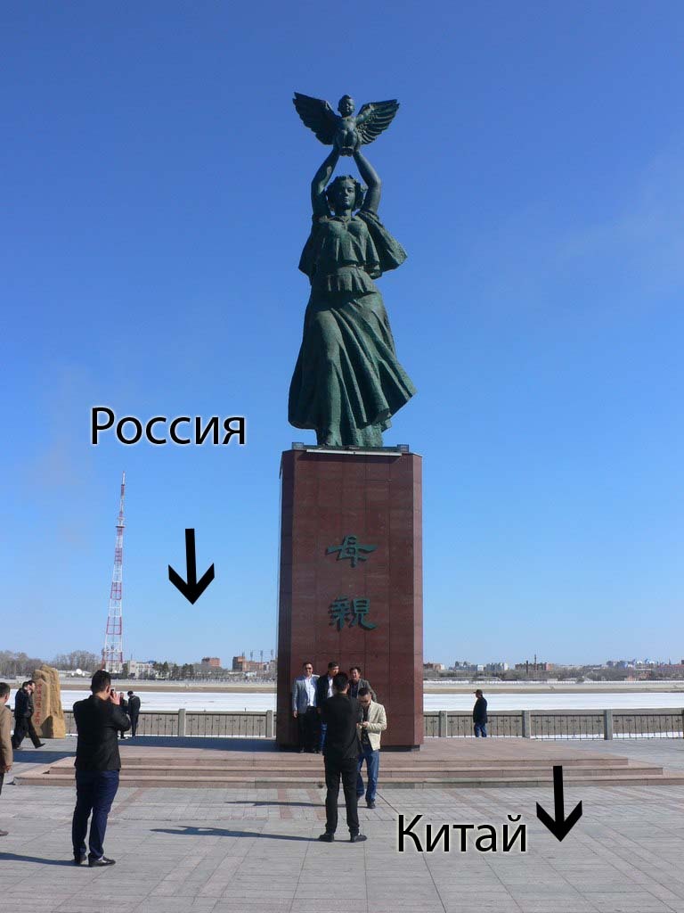 Стрелками помечены пограничники-наши и китайские. Ближе это выглядит примерно так (с российской стороны)